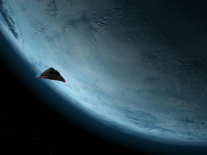 The Delta Flyer orbiting an icy class L planet