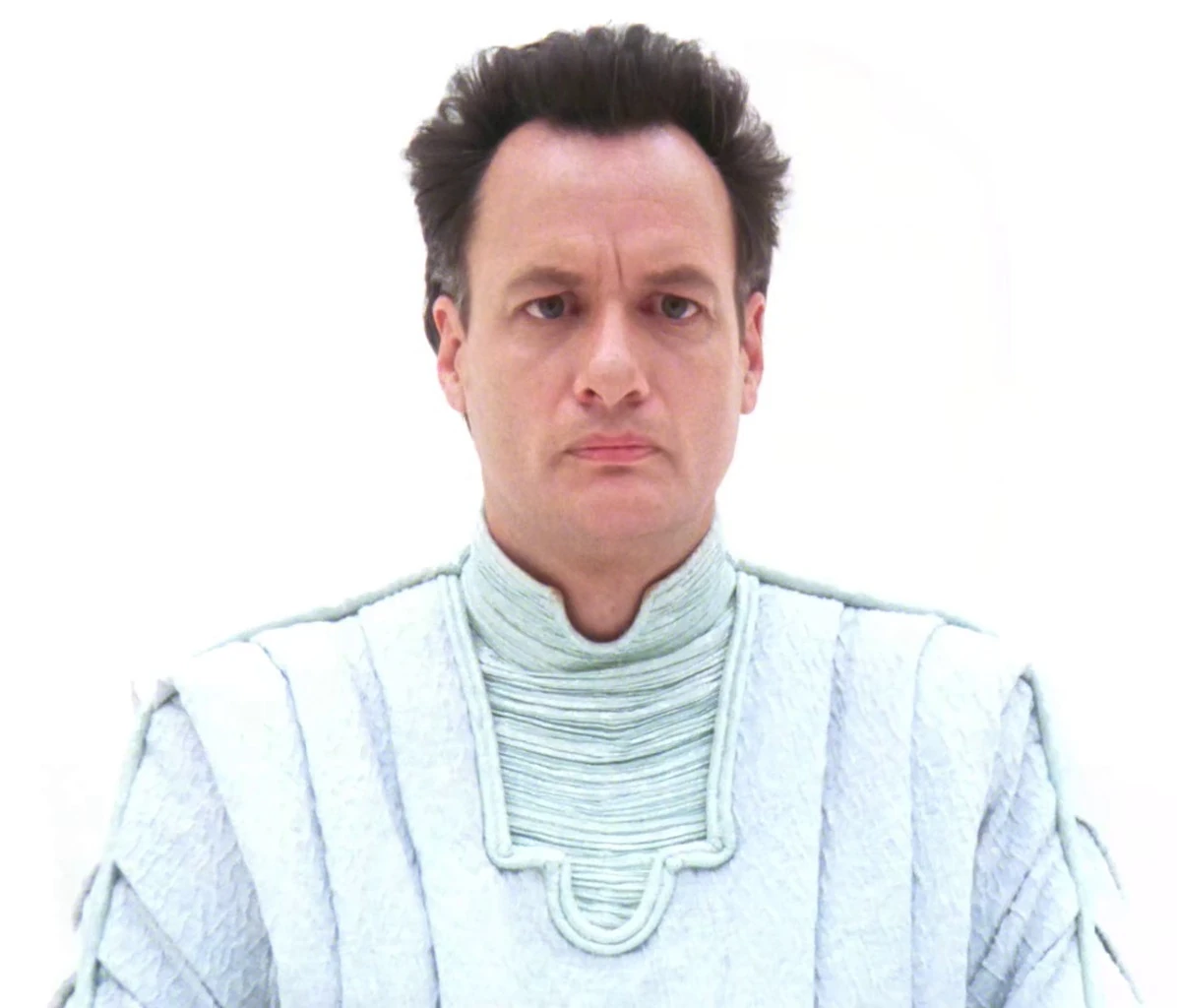 Minimal makeup was used for the character of Q. "We always defined Q with a little eye makeup and a little lip color, just to make him stand out," recalled Makeup Supervisor Michael Westmore. (Star Trek: The Magazine Volume 2, Issue 12, p. 26)