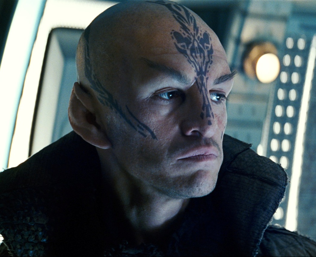 Romulan prosthetics for the film Star Trek were at first arranged to be the purview of Proteus FX Makeup Effects Supervisor Barney Burman. "I did some early designs for the Romulans in my shop, but when my workload became too heavy, I hired Joel Harlow to come in and handle them. We all decided it would be best if Joel took over the task of creating the Romulans on set close to [Director] J.J. [Abrams] so he could see and direct their progress each day. We set up a makeup trailer for the Romulans, and Joel hired a crew of people to work on that and just did a fantastic job." (Star Trek Magazine issue 155, p. 57) This makeup crew, called Joel Harlow Designs, sculpted and designed Romulan ear and forehead prosthetics. A total of forty main Romulan characters were created to appear in the movie, a process that started with lifecasts for each actor. (Star Trek - The Art of the Film, p. 37) Harlow himself remembered, "J.J. did not want to see any hair lace in the wig applications, so we made the entire forehead and eyebrows as one piece, with hair punched into the silicone before application. I wanted to give the Romulans an animal look, so we widened their nose bridge and did some interesting stuff with their brows – but nothing so extreme that you couldn't believe they were real." (Cinefex, No. 118, pp. 46 & 47) After the individual prosthetic pieces were crafted and prepared for filming, Harlow's team also applied the prosthetics. The Romulan makeup designs from the same film incorporated tattoos that were made to look tribal. (Star Trek - The Art of the Film, p. 37)