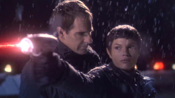 Still skeptical of time travel, T'Pol's position on the Temporal Cold War was finally upended when she and Captain Archer visited Detroit of the year 2004. They were aided by temporal agent and former Crewman Daniels upon their visit to the past, into which the pair of Enterprise officers had traced several Xindi-Reptilians. Together with Archer, T'Pol prevented the Xindi invaders from releasing a bio-weapon on Earth and exposed the involvement of the Xindi's gods, the Guardians. (ENT: "Carpenter Street")